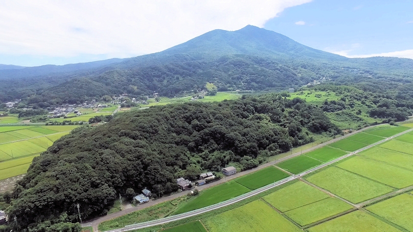 右に筑波山が見えます。正面の山々は筑波山から北に伸びた筑波連山です。方向は上がほぼ北東です。