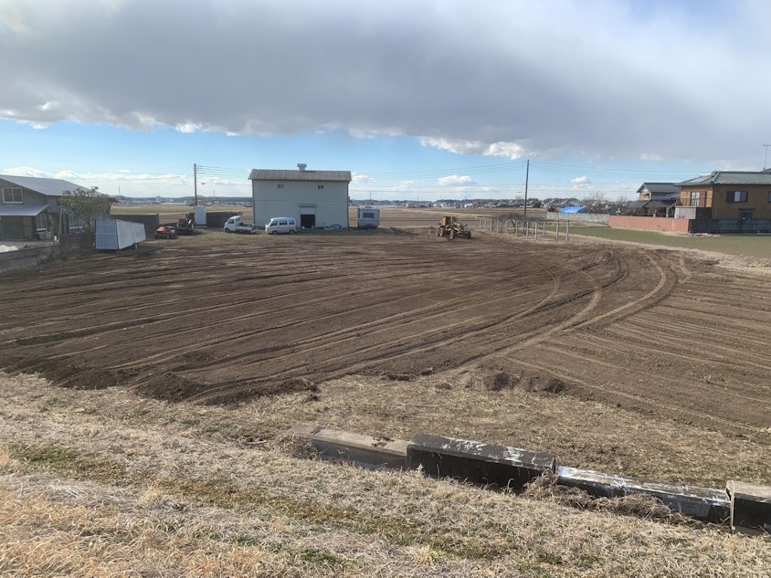 整地中のフィールドです。2025年2月20日 方向は西です。後方は桜川河川敷です。