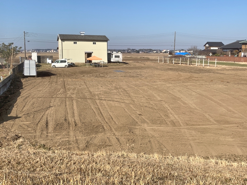 整地中のフィールドです。2025年2月20日 方向は南東です。筑波山頂までは直線距離にして約4.5km