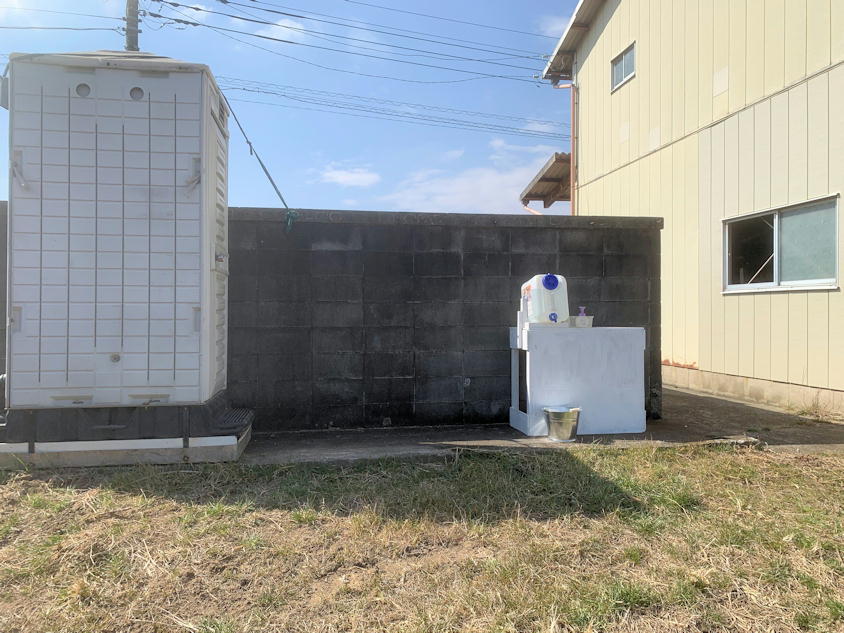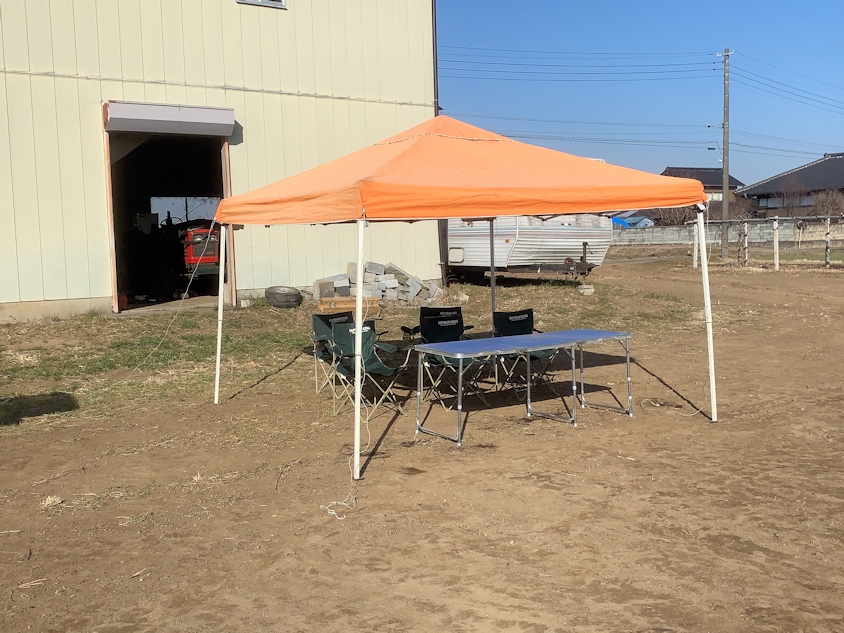 簡易水洗トイレ 水道 100V電源 倉庫 テント(3×3m)・椅子・テーブル